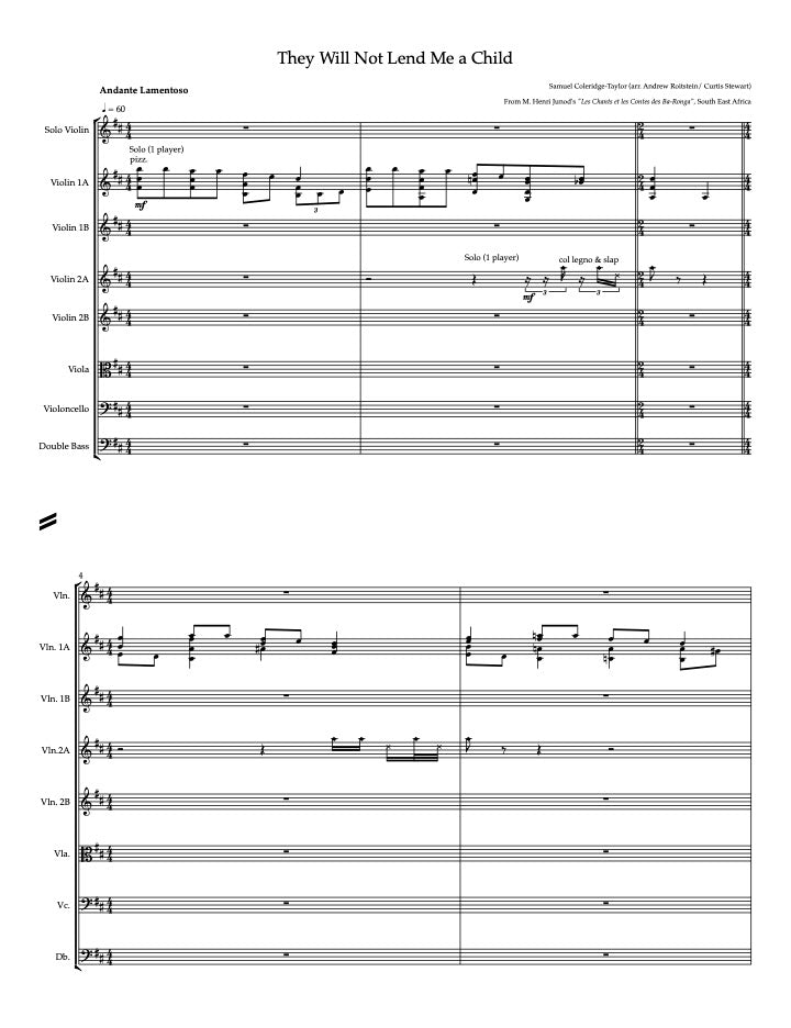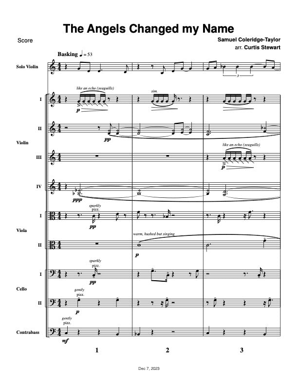 ‘I was drawn to an approach of dealing with the history of slavery within one’s family, the ownership of a name and its ‘rebranding’ – reflecting on the American Slave and how Black Americans deal with creating a sense of pride, familial storytelling and lineage in contemporary America. This notion of ‘rebranding’ extends to the ‘Negro Melody’… My intent with these arrangements is to acknowledge the impact of those melodies on current popular culture, and reflect that influence onto the orchestral stage – to create moments where listeners may participate vocally, with movement, or rhythmically clapping along – to maintain a sense of belonging and recognition – to create community around this music in the classical concert hall – to embrace where all contemporary American Concert music extends from, in my belief – America’s mother-music: the Blues.’ – Curtis Stewart