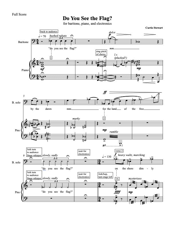 for Voice, Piano + Triggered Sound Samples | paraphrase of all verses of the US National Anthem - Commissioned for the NY Festival of Song | 2020 | 5’