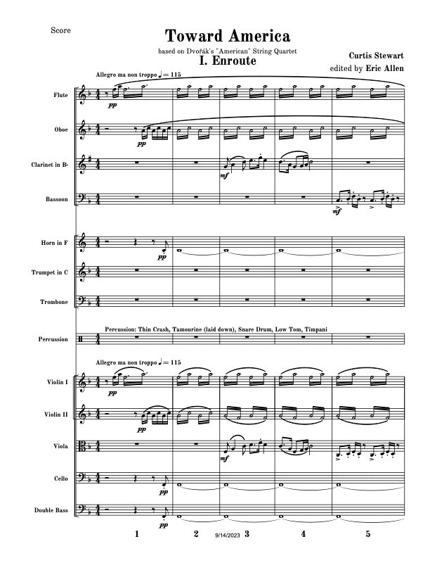 symphonic fantasy on Dvorak’s American Quartet | (1 -1-1-1-2-1 -0 -0 -timp- perc-strings) | commissioned by the Knights | 2023 | 25’